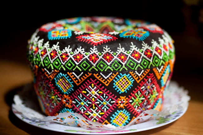 - Аккуратно уберите салфетку. Такое украшение кулича пасхального своими руками выглядит очень необычно.