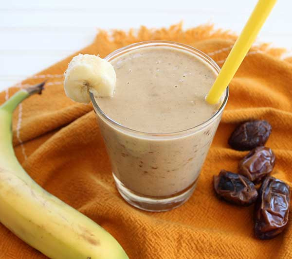 Такой напиток поможет улучшить работу пищеварительной системы. Возьмите 50 грамм чернослива, 1 пломбир и стакан молока. Сухофрукты тщательно промойте и залейте кипятком. Через некоторое время слейте воду, а чернослив поместите в холодильник остывать. Затем размелите его в кашицу, добавьте чернослив и пломбир в шейкер к молоку. Взбивайте на высокой скорости пару минут.Милкшейк с финиками