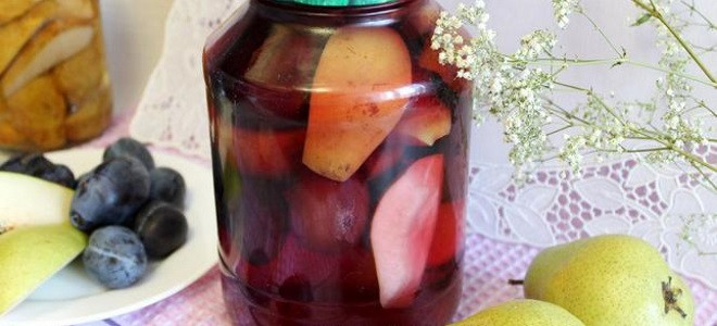 Компот ассорти из слив удается на славу, если дополнить состав насыщенным по вкусу виноградом и ароматными грушами. Банки следует заполнять наполовину, определяя пропорции ингредиентов на свое усмотрение. Если сливы и виноград сладкий, без ярко выраженной кислинки, напиток дополняют щепоткой лимонной кислоты.Ингредиенты: