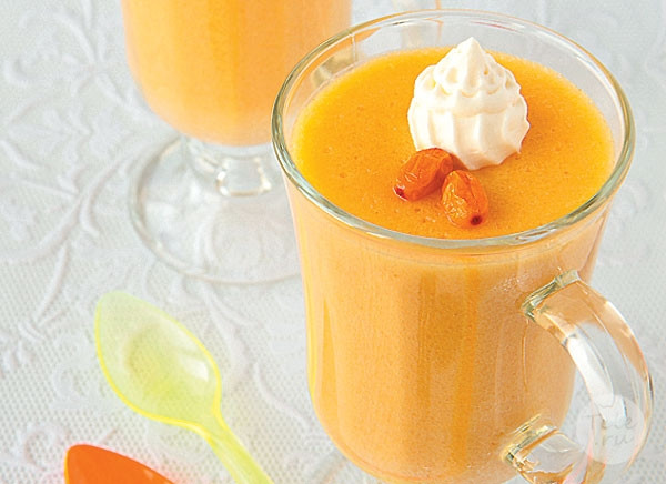 - В настой влить сок одного апельсина, добавить ягоды облепихи и все перебить погружным блендером.