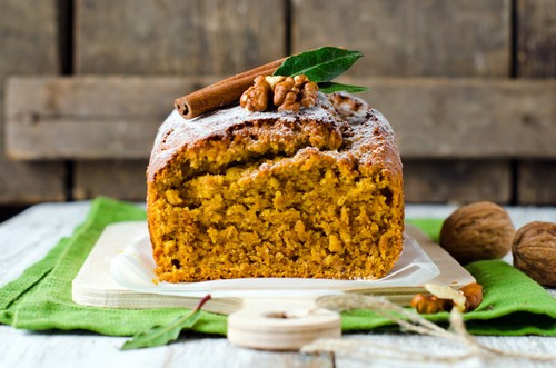 - Свежеиспеченный кекс остужаем, а затем извлекаем из формы. Поверхность выпечки осыпаем сахарной пудрой через мелкое сито.