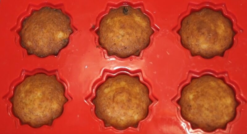 - Разложить тесто, набирая его ложкой, по формам. Переложить будущую выпечку в духовку, где при 180 градусах готовить ее на протяжении сорока минут.