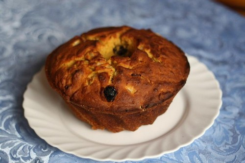- В последнюю очередь добавляем рубленные орехи с промытым и просушенным изюмом. После этого тесто можно перекладывать в форму и отправлять в разогретую до 180 градусов духовку. Силиконовую форму нужно смазывать маслом только в случае, если вы пользуетесь ею впервые, формы из других материалов нужно смазать маслом и присыпать мукой или манкой.