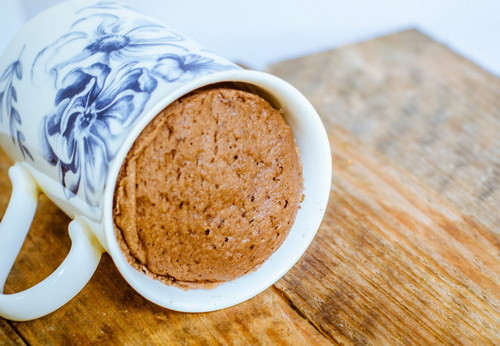 - Чашку заполнять можно на две трети, такой кекс не сильно растет. Запекать нужно на полной мощности одну или две минуты. Подавать можно без ничего, а можно полить топпингами, сиропами или чем-то иным по вкусу, к примеру, растопленным шоколадом.