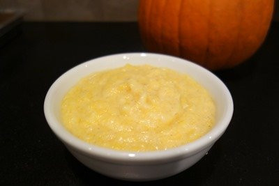 - После того как тыква приготовится с помощью толкушки или блендера измельчите ее в пюре до однородной консистенции.