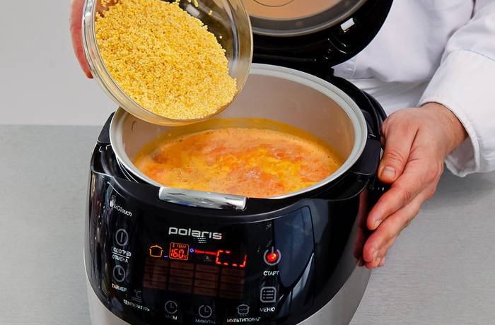 - В панели управления выберите режим «молочная каша». Если этой функции нет, выбирайте режим «каша» и установите таймер на 30 минут.