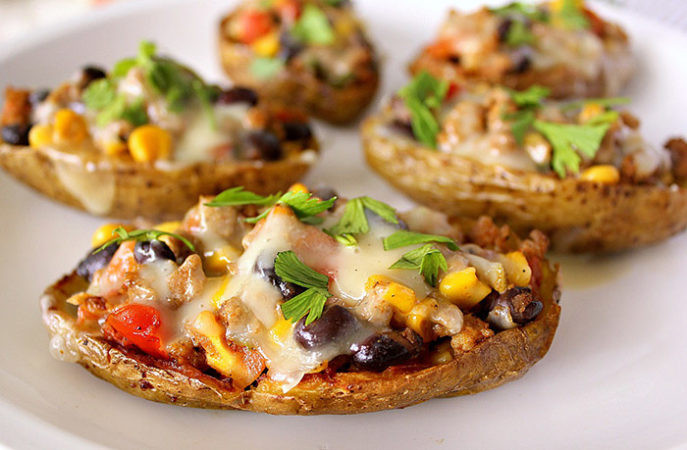 Картофель, фаршированный курицей с овощами
