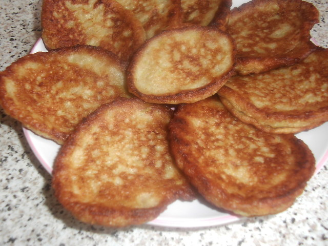 - Хорошенько разогрейте большое количество масла на сковородке, выложите ложкой тесто. Жарьте на сильном огне с нижней стороны. Затем переверните.