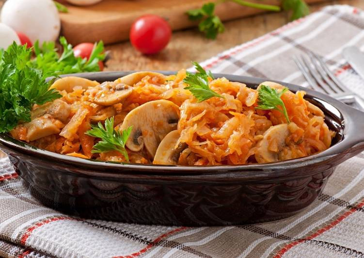Капуста, тушённая с грибами и сметаной в мультиварке