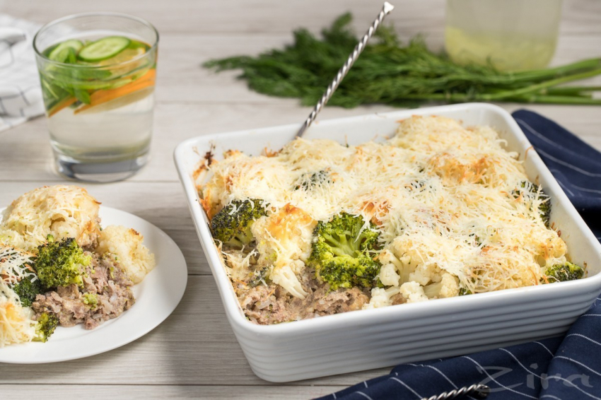Брокколи и цветная капуста – близкие родственники, поэтому запекая их вместе, мы только усиливаем вкус каждого, подчеркивая их нежность. Чтобы вкус этого блюда сделать более выразительным, в нем используют плавленый или твердый сыр с чесноком. От этого аромат и вкус только выигрывают.