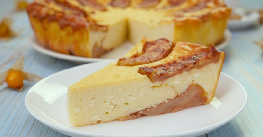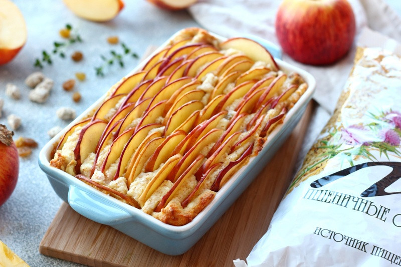 Сочная запеканка из творожной массы с рисом и яблоками в духовке