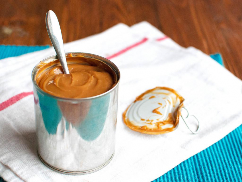 - Кладем сверху по 1,5 чайной ложки густого вареного сгущенного молока.