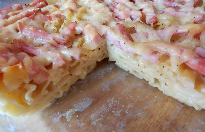 Любители колбасы могут побаловать себя лапшевником с ветчиной.Для кулинарного шедевра понадобятся:
