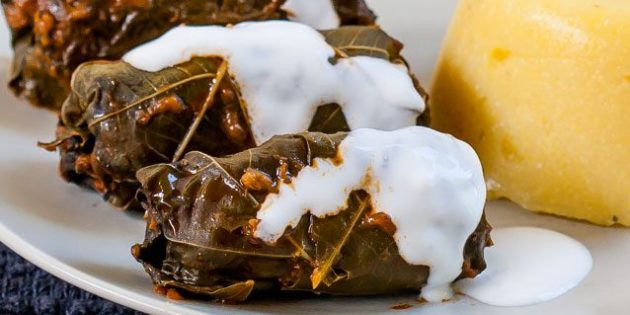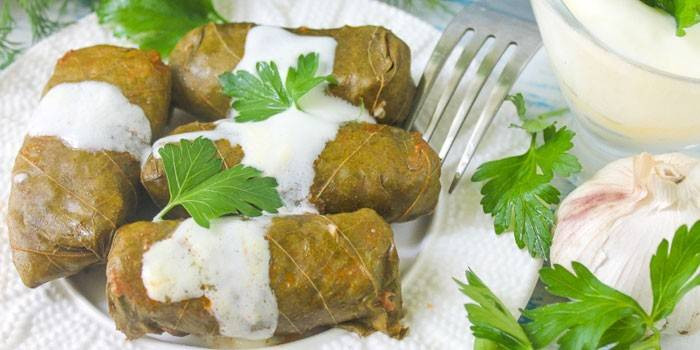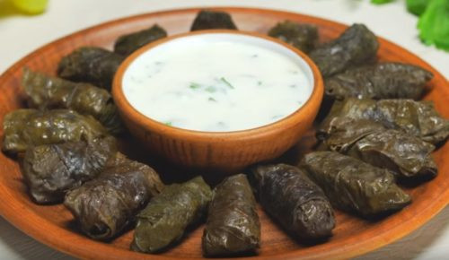 Рецепт приготовления долмы из виноградных листьев с соусом из мацони