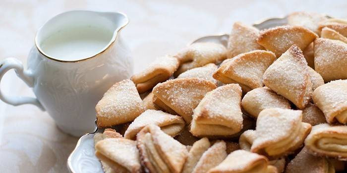 - Раскатывают пласт, выдавливают формы, отправляют на противень. Запекается на протяжении получаса при 180 градусах.