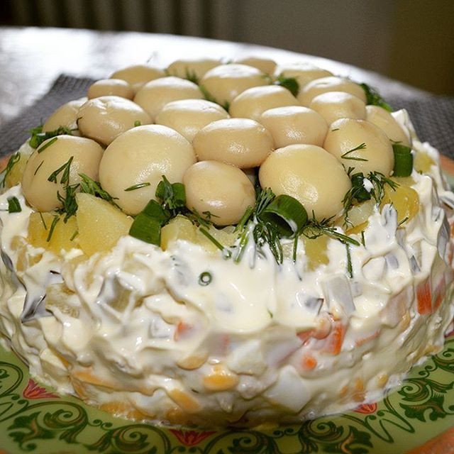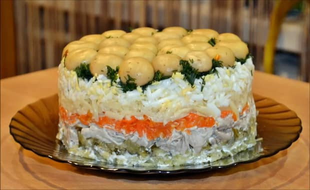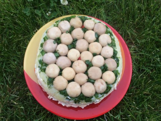 Салат Грибная поляна с шампиньонами из 7 слоев