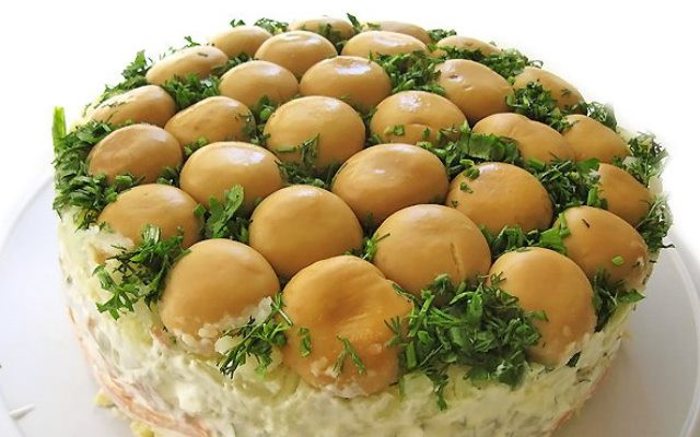 Готовим слоеный салат «Грибная поляна» в домашних условиях
