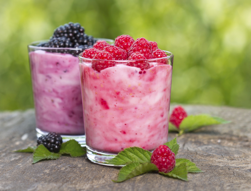 - Вскипятите молоко и остудите до 40°С. Добавьте в молоко натуральный йогурт и ягодно-фруктовую массу, перемешайте до однородного состояния.