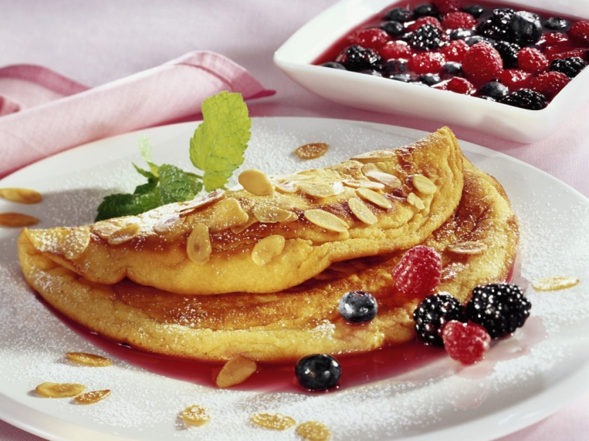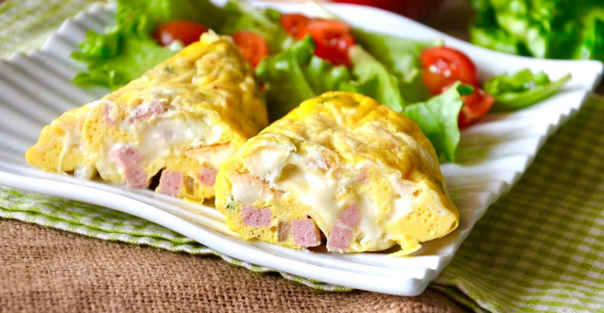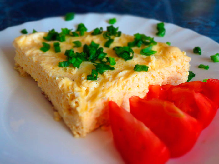Омлет, приготовленный по этому рецепту, получается нежным, но вместе с тем сытным.