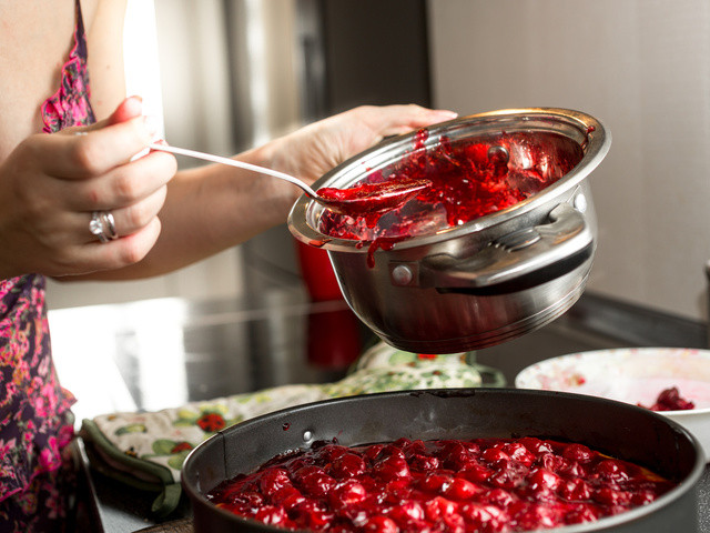 - Добавьте сахар и дайте немного постоять, пока вишня пустит сок.