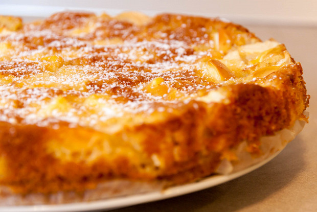 - Готовый остывший пирог на питьевом йогурте посыпать сахарной пудрой.