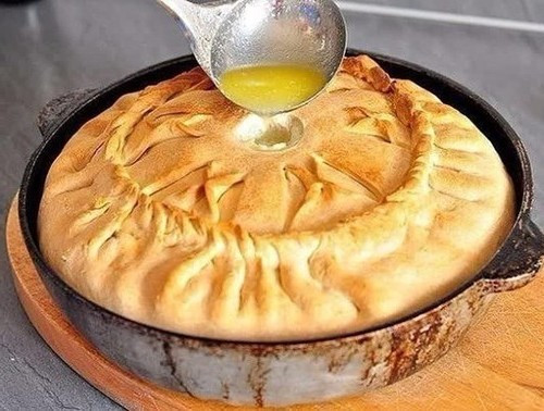 - Татарский пирог выпекается в предварительно разогретой духовке до 210 градусов минимум полтора часа.