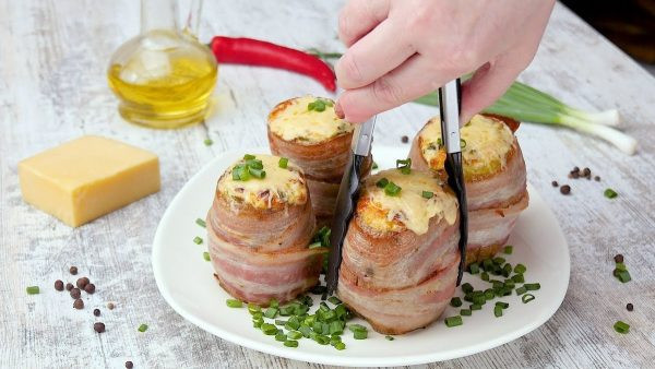 - С беконом бомбочки приобретут восхитительный аромат и сочность