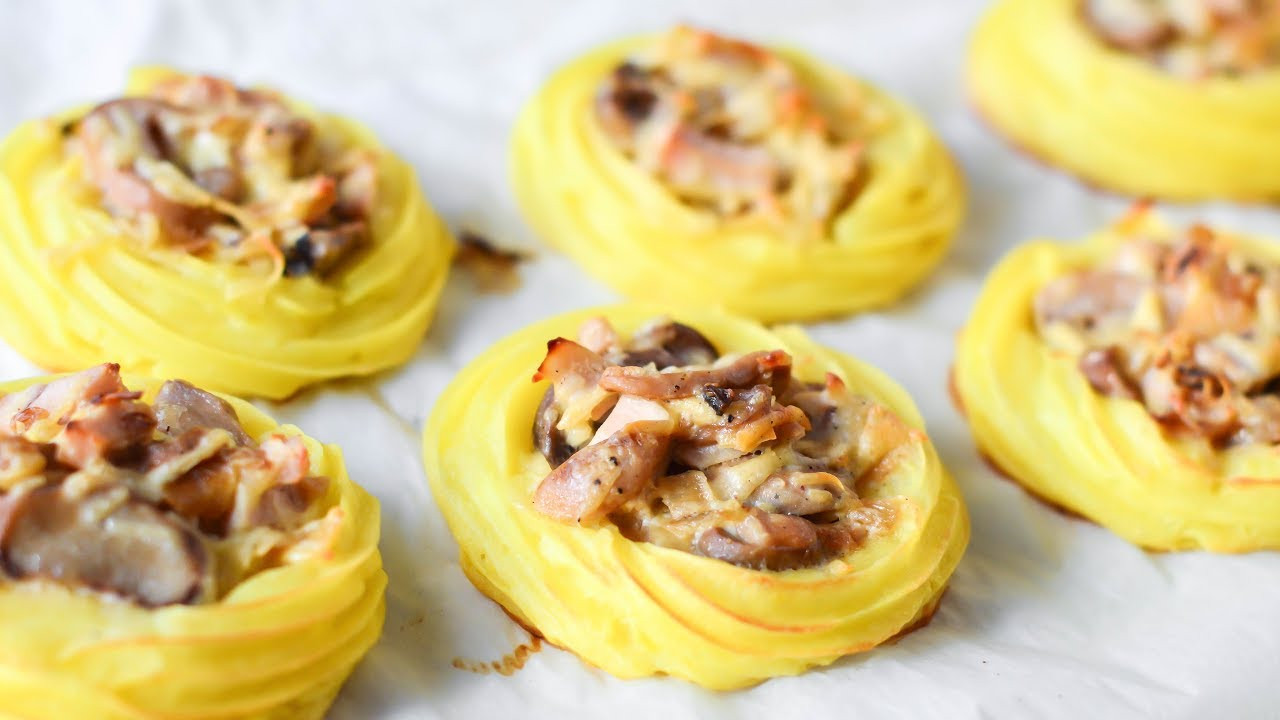 Гнёзда с грибами из вчерашнего картофельного пюре