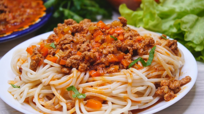 Болоньезе паста готовится из двух видов мяса — говядины и свинины, с добавлением бекона и свежих сочных томатов. В соус добавляют красное вино и мясной бульон. Однако существует масса разновидностей, от простого рецепта с томатным соусом до постного блюда с овощами.