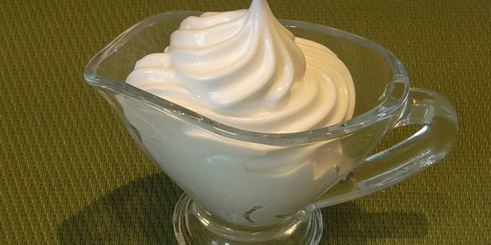 Такой крем получается более насыщенным, со сливочным вкусом. Сметанный белковый крем используют для наполнения трубочек, украшения пирожных и тортов. Его можно применять и в качестве прослойки.