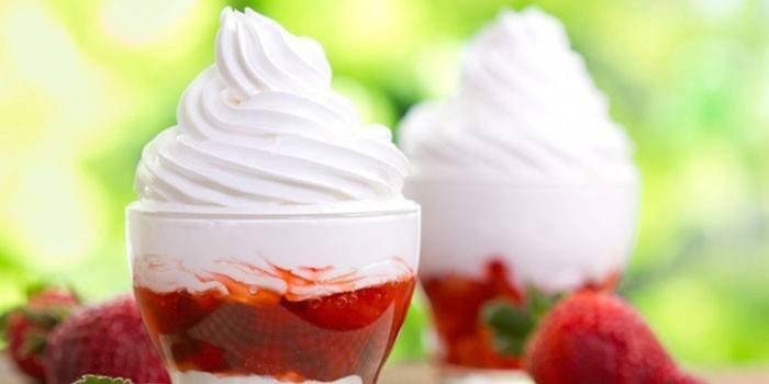 Крем из белка и сахара подходит для украшения кондитерских изделий, заполнения трубочек или эклеров. Если соединить его с фруктами или ягодами, можно получить вкусное произведение искусства.