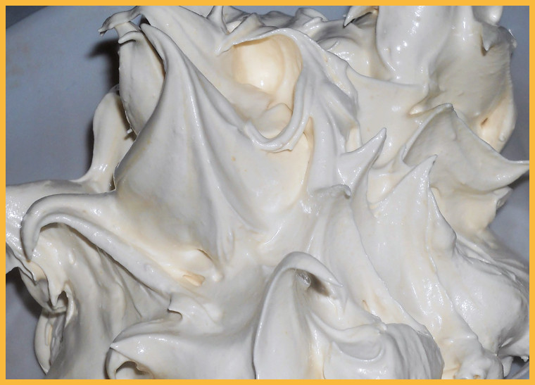 Вкусный белковый крем с добавлением сыра маскарпоне имеет приятный сливочный вкус, хорошо держит форму и просто великолепно подойдет в качестве наполнителя для трубочек и вафельных корзинок.