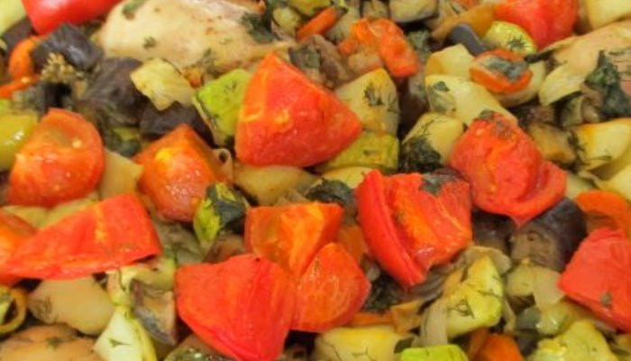Рецепт овощного рагу из баклажанов и кабачков с курицей в духовке