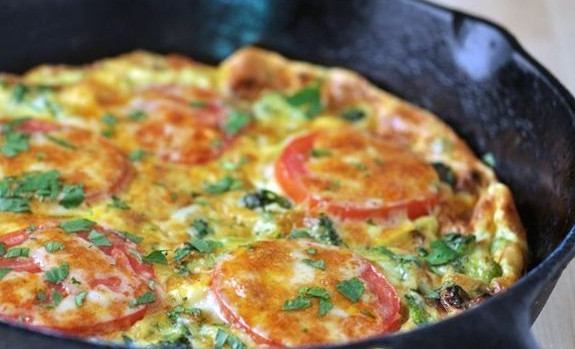 Яичница с брокколи и помидорами
