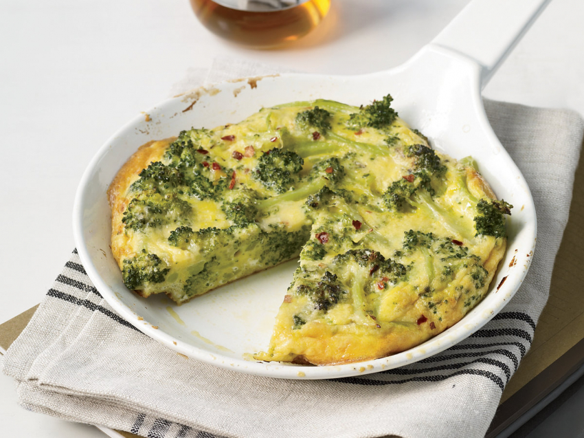 - В этот омлет используют совсем нежный брокколи, и бланшируют быстрее, чем в прочих рецептах – всего минуту.