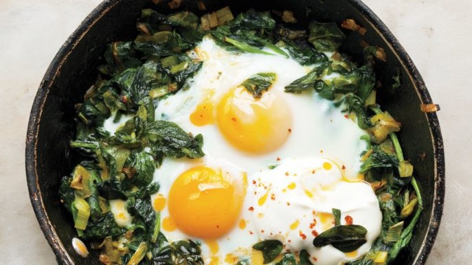 Полезный и сытный завтрак – яичница со шпинатом, простой рецепт не потребует больших временных затрат.- 2 яйца;
