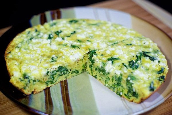 - Если не получается приготовить, выкладывая овощи сверху поджаривающегося яичного блинчика, то омлет со шпинатом получится таким же красивым, ярким и вкусным, если просто смешать все ингредиенты и поджарить как блинчик с обеих сторон.