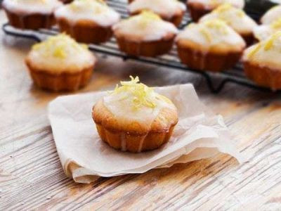- Пока изделия выпекаются, нужно взбить сок лимона с цедрой, сахарной пудрой и яичным белком до однородности. Регулировать густоту глазури нужно, добавляя в слишком жидкую сахарную пудру, а в слишком густую – лимонный сок.