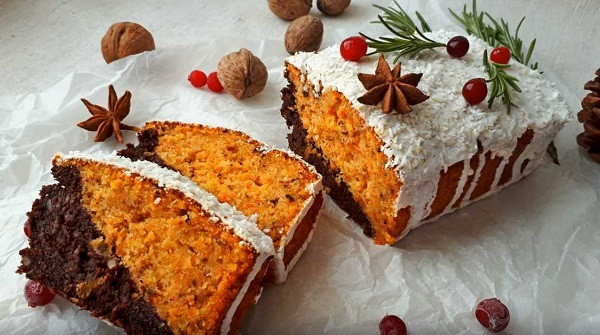 Свежестью и пикантностью характеризуется морковный кекс, рецепт которого включает присоединение апельсина. Десерт отличает пряный аромат и аппетитный вид. Заготовки часто украшают глазурью, а в тесто добавляют корицу. Праздничный вариант получится, если сделать чиз-крем, который отличается нежнейшей структурой и великолепным вкусом.Ингредиенты:
