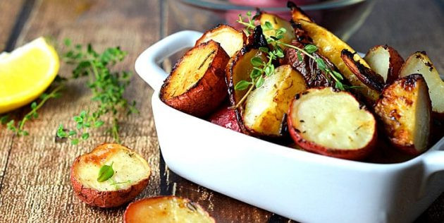 Другое блюдо, которое можно приготовить в духовке – «Картошка по-домашнему». Для него подойдут как крахмалистые клубни, так и те, в которых крахмала мало. Картофель надо обработать аналогично предыдущему рецепту, а потом – в зависимости от размера — нарезать на половинки или четвертинки. Важное условие, касающееся одинаковости нарезки, соблюдается и в этом рецепте приготовления картошки в духовке. Нет ничего хуже, чем непропеченные дольки, соседствующие с дольками, превращающимися в пюре.Для базового рецепта вам понадобится: