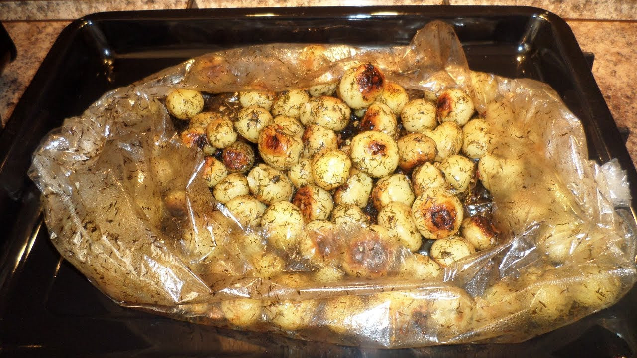 - Помойте картофелины примерно одинакового размера при помощи жесткой губки или щетки. Подсушите его и сложите в рукав.