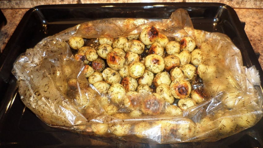 Клубни выбирают равной величины, а фольгу нарезают квадратами такого размера, чтобы было достаточно места их завернуть.