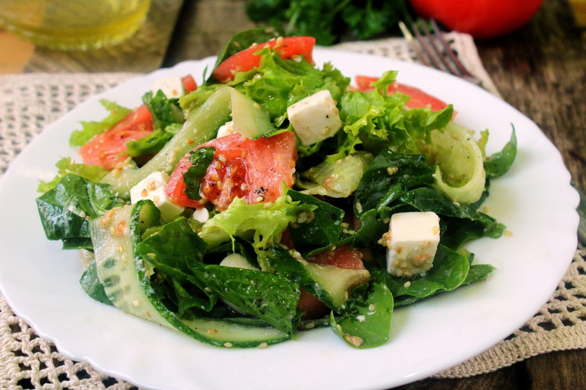 Привлекательный салат с овощами, который очень популярен на природе. Очень хорошо сочетается с шашлыком, обязательно приготовьте его в ближайшее время, как решите пойти с друзьями на шашлыки. Поверьте, друзья будут вам благодарны за такой салатик.Салат со свежими овощами и сыром «Фета»
