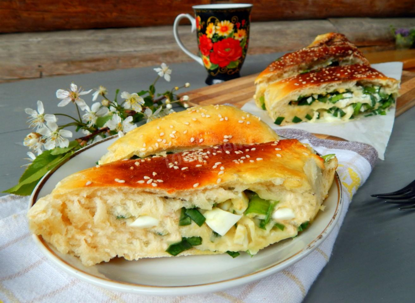 - Яйцо взбейте с солью, добавьте кефир и соду, взбейте вместе. Добавьте специи и муку.