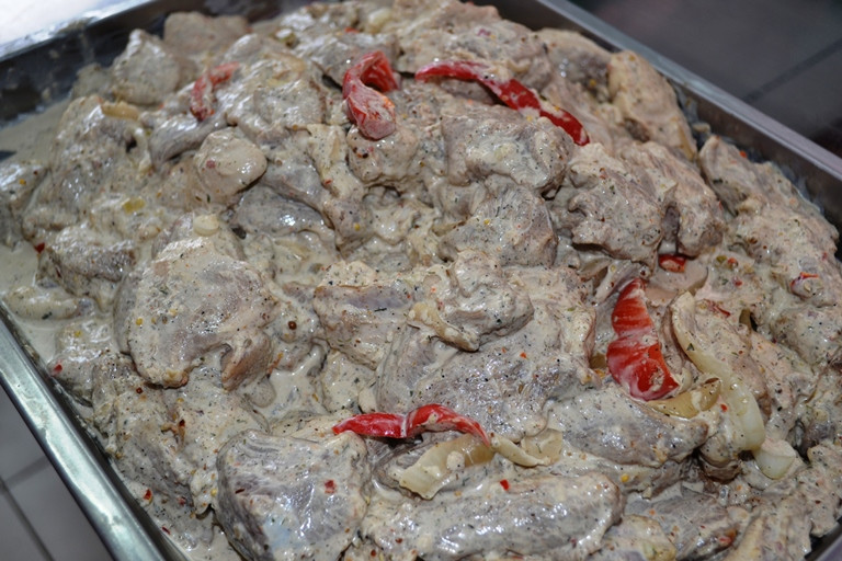- В таком виде мясо отправляют в камеру холодильника и оставляют на семь часов, каждый час следует перемешивать будущий шашлык.