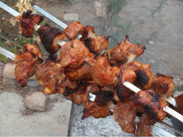 - Брать слишком жирные куски ни к чему. Во время жарки излишки жира будут капать на угли, гореть на них, и это придаст готовому блюду не нужный запах.