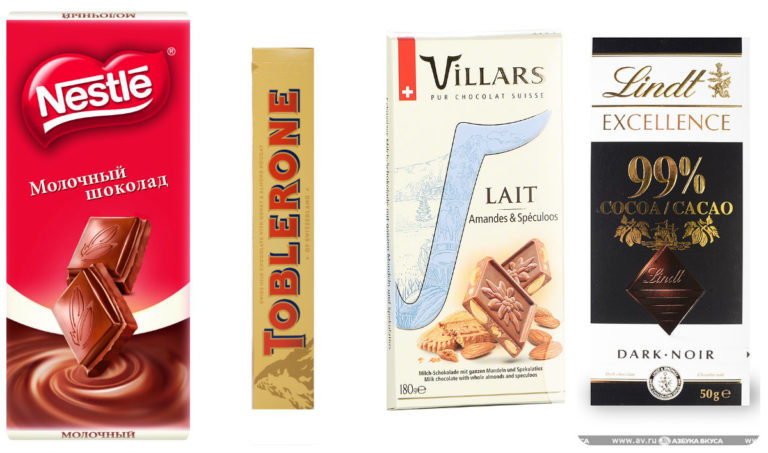 - Россия щедрая душа (Nestle), г. Одинцово. Темный, молочный, десертный. от 35 до 50% какао, сахар, пальмовое масло.