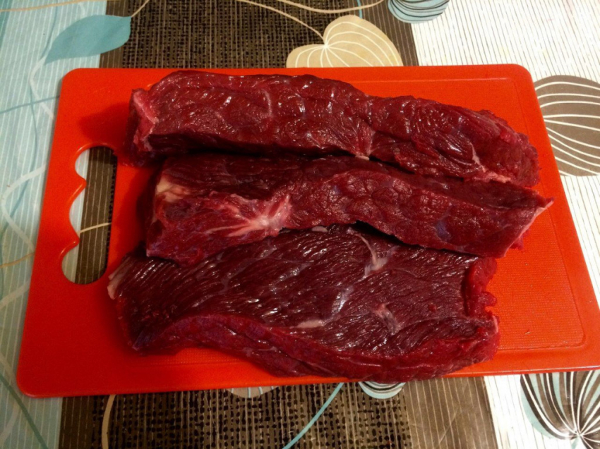 Идеальное мясо для бастурмы — свежая говядина красного цвета, но ни в коем случае не замороженная. Она должна быть без пленок, прожилок и жира, лучше всего, если это мякоть задней части бедра или мякоть спины, то есть филе. Если на задней части есть небольшие прожилки, то не страшно.