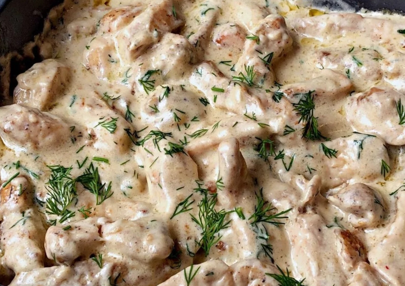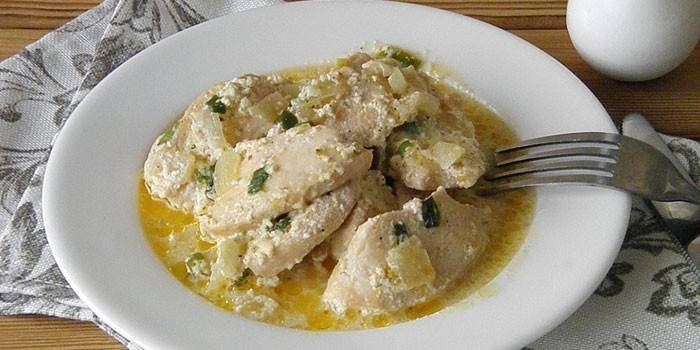 Бефстроганов из курицы в кефире
