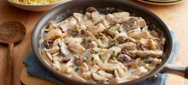 Бефстроганов из курицы с шампиньонами